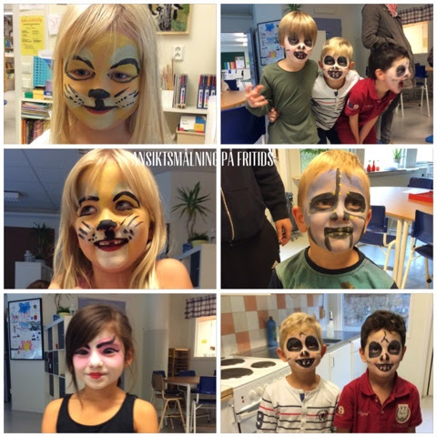 Idag bestämde fröken Sussan att det var dags för ansiktsmålning på Fritids.....då såg det ut så här efter en liten stund!! :)